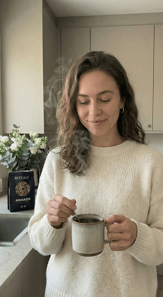 I created Rituale during a season of burnout, when my body kept whispering “slow down” while my to-do list said the opposite. Coffee gave me temporary speed but zero stability. My nervous system felt constantly overstimulated — and I knew there had to be a better way.